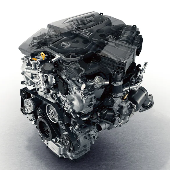 El Motor: 3.0 L V6 twin-turbo (VR30DDTT) NISMO-tuned con 420 hp y 384 lb-ft de torque. Entrega respuesta más rápida, flujo de potencia lineal y empuje fuerte hasta el límite de revoluciones.