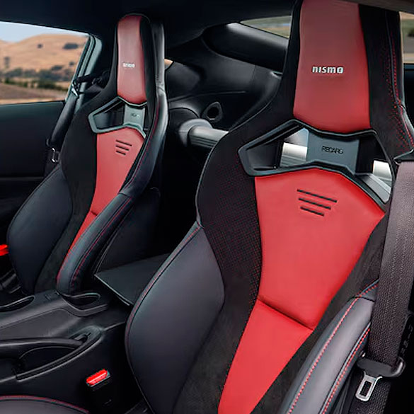 El Nissan Z NISMO es la versión más extrema y enfocada en pista del icónico deportivo japonés. Con un motor 3.0 L V6 twin-turbo afinado por NISMO que entrega 420 hp y 384 lb-ft de torque, combinado con una transmisión automática de 9 velocidades de respuesta ultra-rápida, ofrece una aceleración brutal y una entrega de potencia lineal y adictiva. Su suspensión completamente recalibrada, con amortiguadores de mayor diámetro y resortes más firmes, proporciona un manejo preciso y estable a altas velocidades, mientras que su kit aerodinámico completo (con spoiler trasero, canards, faldones laterales y difusor) genera downforce real y mejora la refrigeración sin sacrificar su silueta clásica. En el interior destacan los asientos deportivos Recaro, el volante forrado en Alcantara con marca roja a las 12 en punto y detalles rojos que transmiten pura adrenalina. En definitiva, el 400Z NISMO es el Z definitivo: más potente, más ágil, más aerodinámico y 100 % orientado al conductor que busca la máxima emoción tanto en carretera como en circuito.